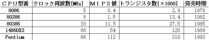 Processing Unit)の速度と規模をインテル社の80シリーズを例にとって表一に示します.